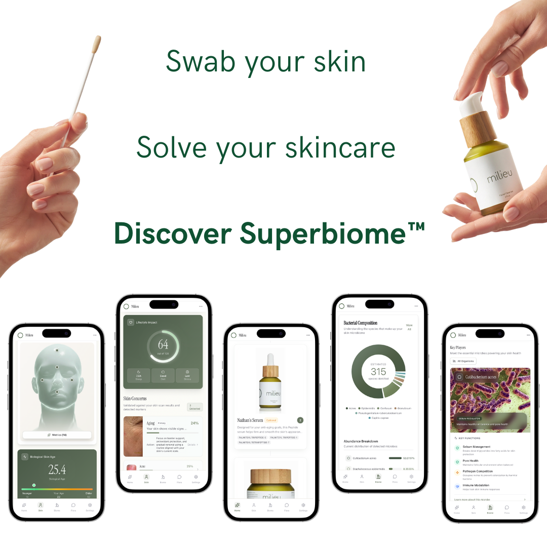 Superbiome™ is the first integrated skincare platform that begins with an at-home skin microbiome test and delivers a precision-matched routine inside one intelligent app.